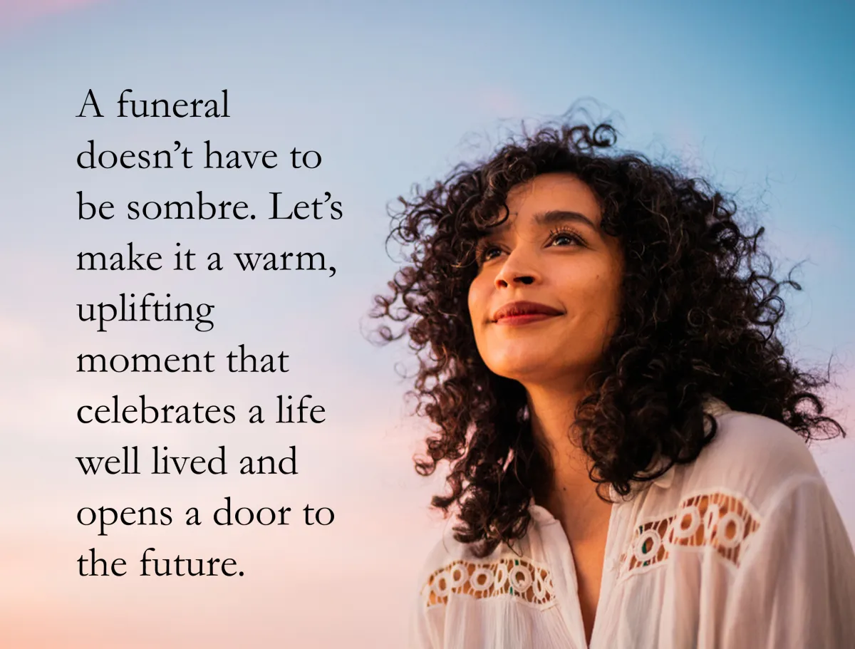 When I meet with you and your family, we'll set the tone for the service, then select the best music, readings and photos.